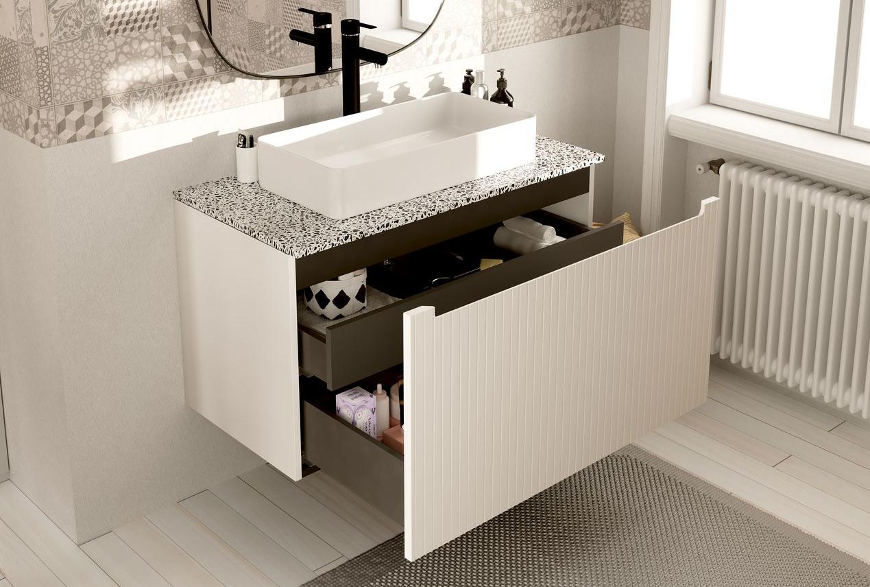 Este tipo de lavabo permite conseguir una estética compacta y ordenada, con una sensación cercana a la de una pieza en bloque. Además, sus paredes ayudan a contener mejor el agua y reducir salpicaduras fuera de la zona de uso.