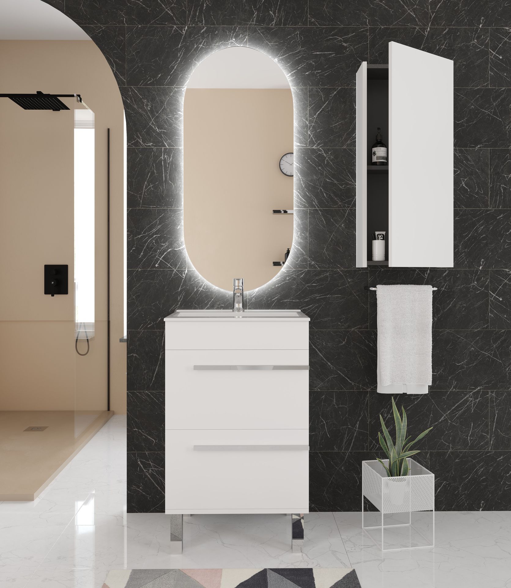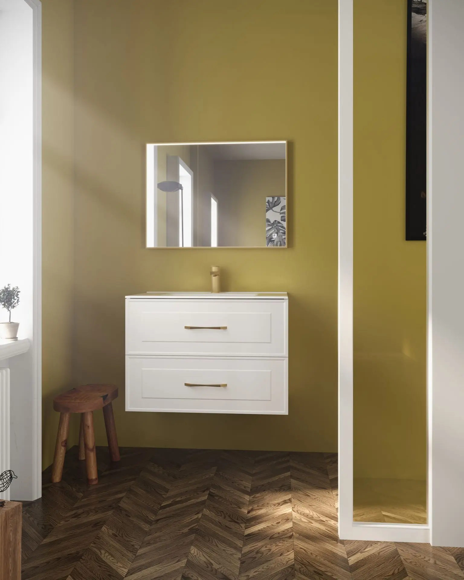 Este mueble suspendido es una opción polivalente, ideal para quienes buscan un estilo contemporáneo con acabados mate que añaden un toque de sofisticación. Gracias a su versatilidad, se integra con facilidad en diferentes estilos de decoración, desde el minimalismo hasta el industrial.