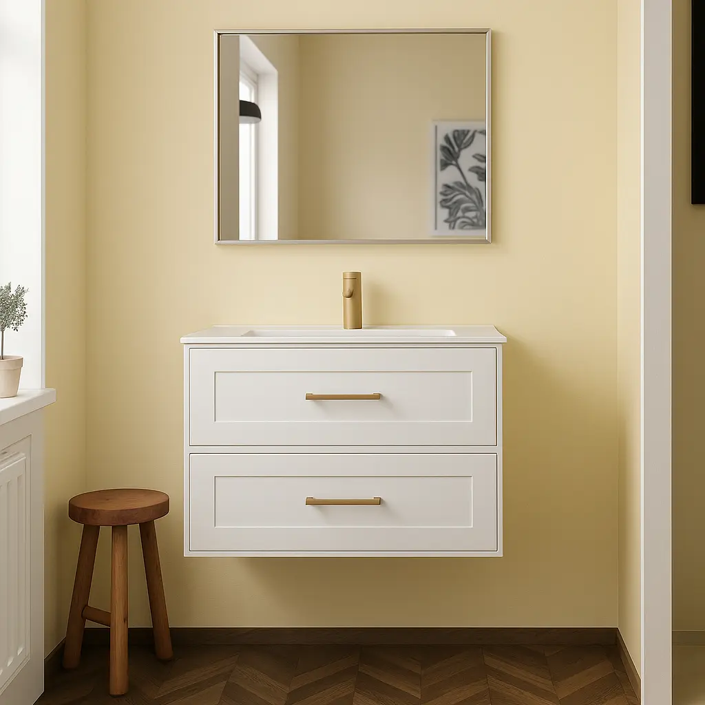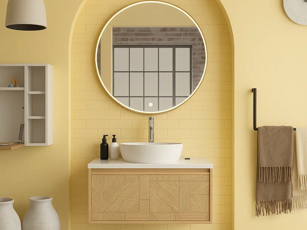 Este suave tono pastel —situado entre el blanco nítido y un amarillo vibrante— se convierte en el nuevo neutro imprescindible, capaz de transformar por completo la sensación de luminosidad y confort en la zona de aseo.